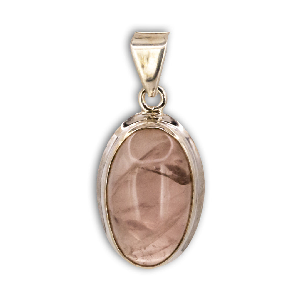 Colgante de Cuarzo rosa engastado en Plata de Ley 925.