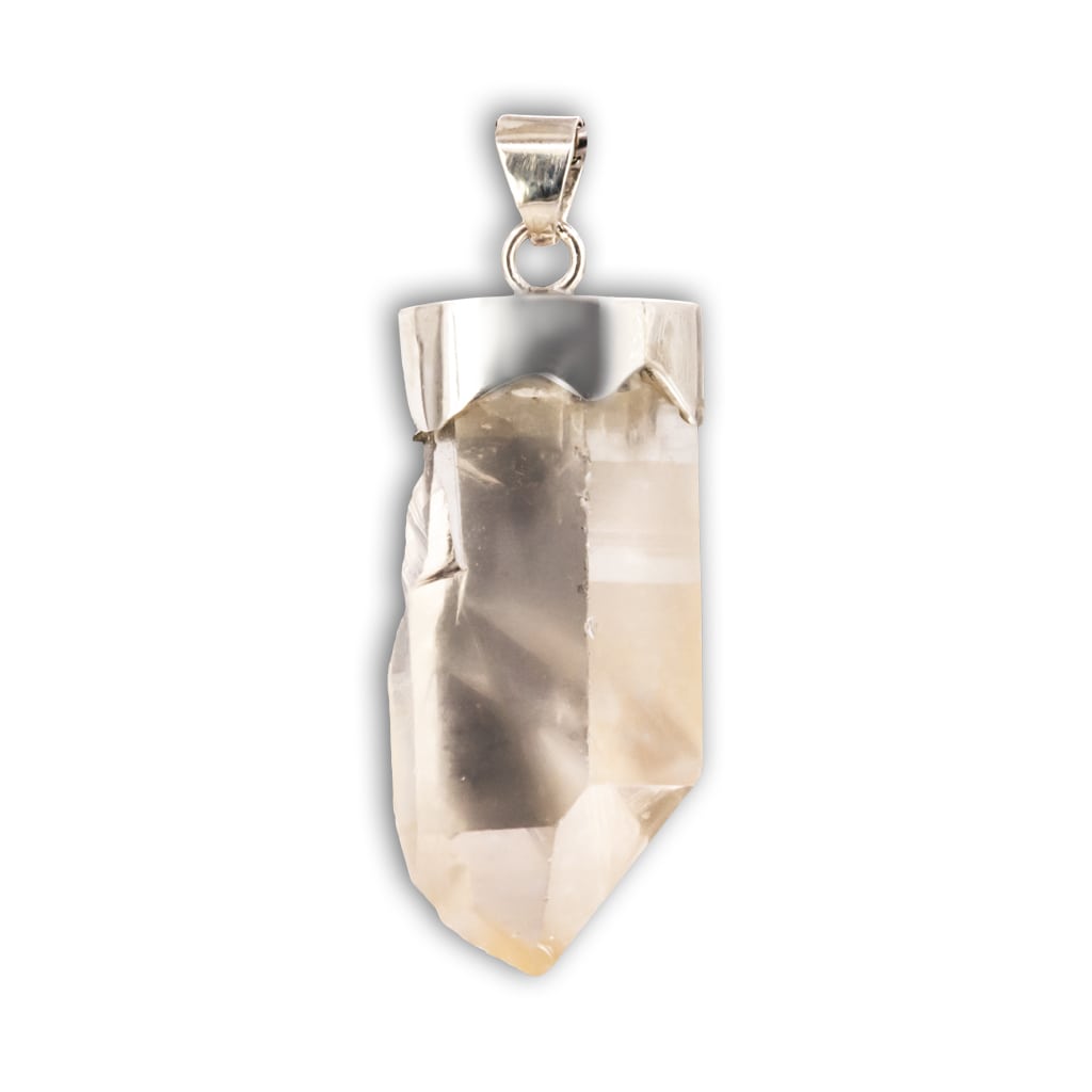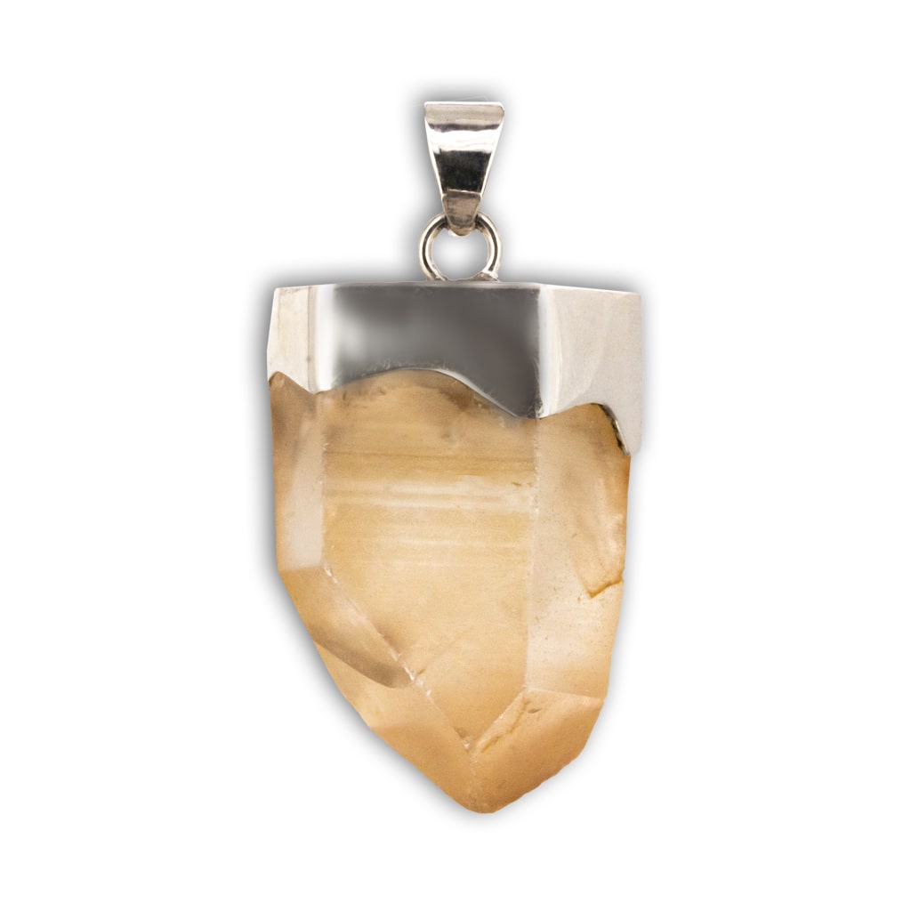 Colgante de Punta de Cuarzo Citrino ntural en color tenue engastado en plata de Ley 925.