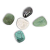 El pack incluye Jade, Aventurina verde, Hematites, Turquenita y Cuarzo Cristal de Roca y una bolsa de yute para su transporte.