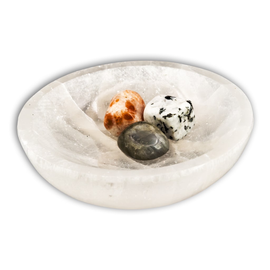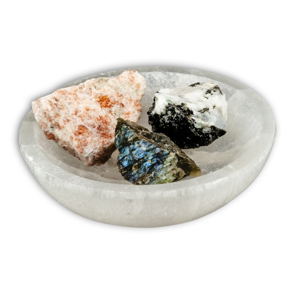 Puedes completar el Pack con un cuenco de Selenita para limpiar y tener juntos los minerales.