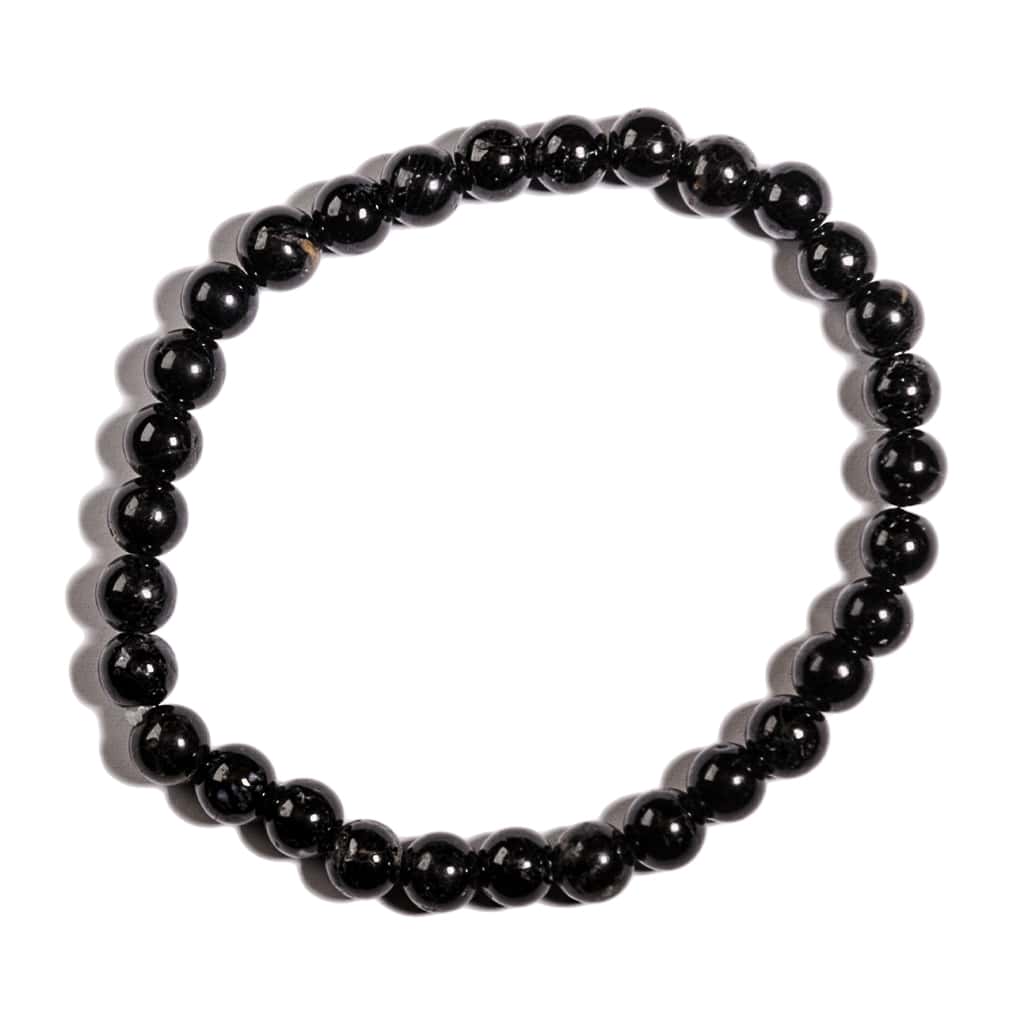 Pulsera elástica de Turmalina Negra natural en forma de Bola Lisa.