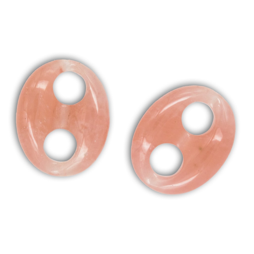 Natural rose Quartz cabochon in the shape of eight. It has two perforations, useful for making pendants.