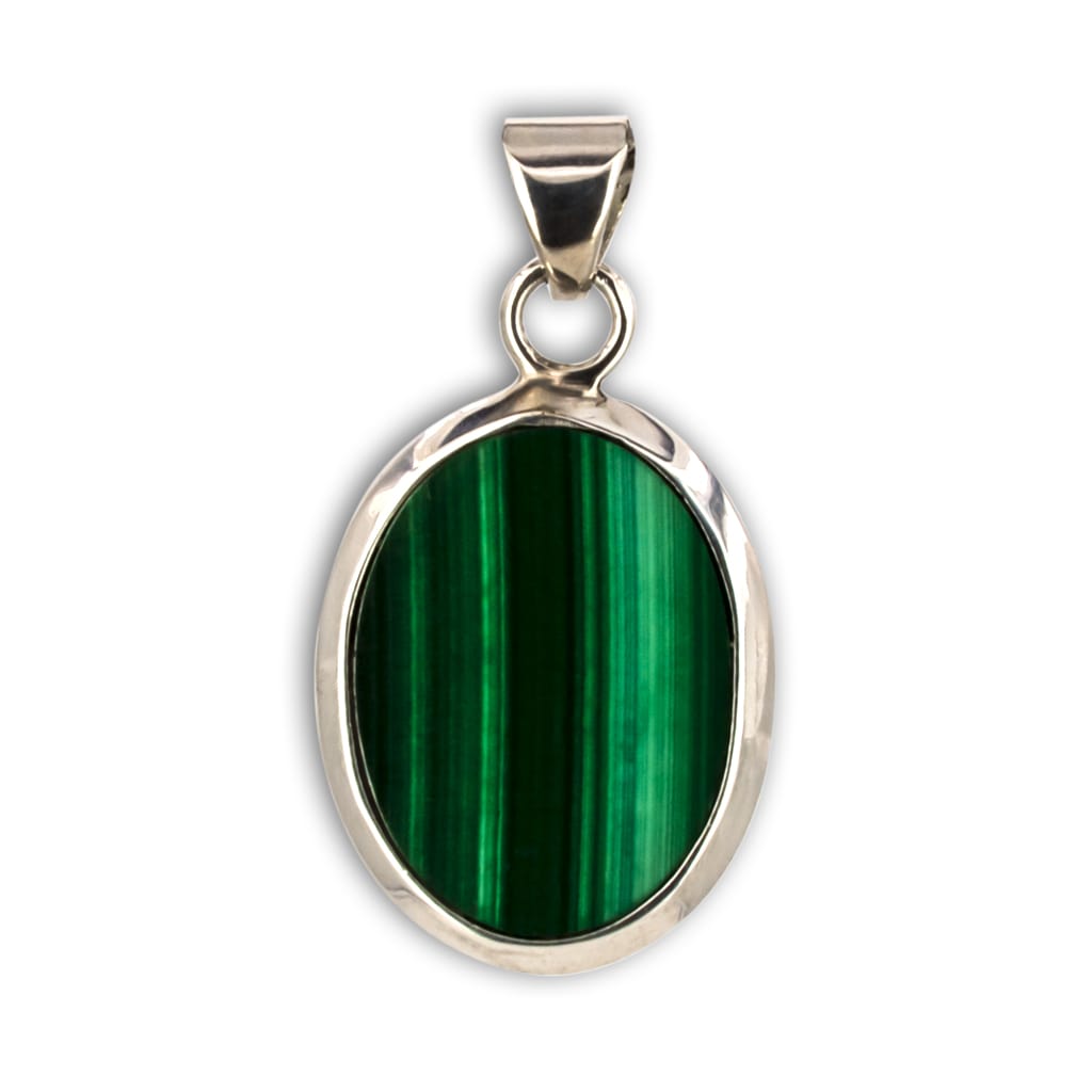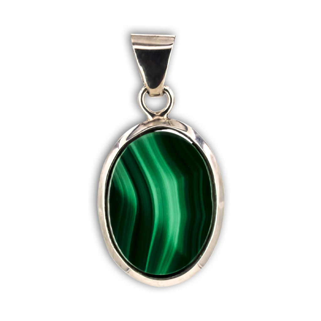 Spectacular high quality Natural Malachite Pendant, polished in the shape of a drop and set in 925 Sterling Silver .