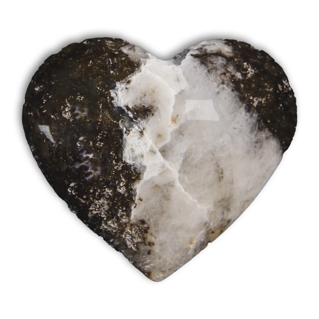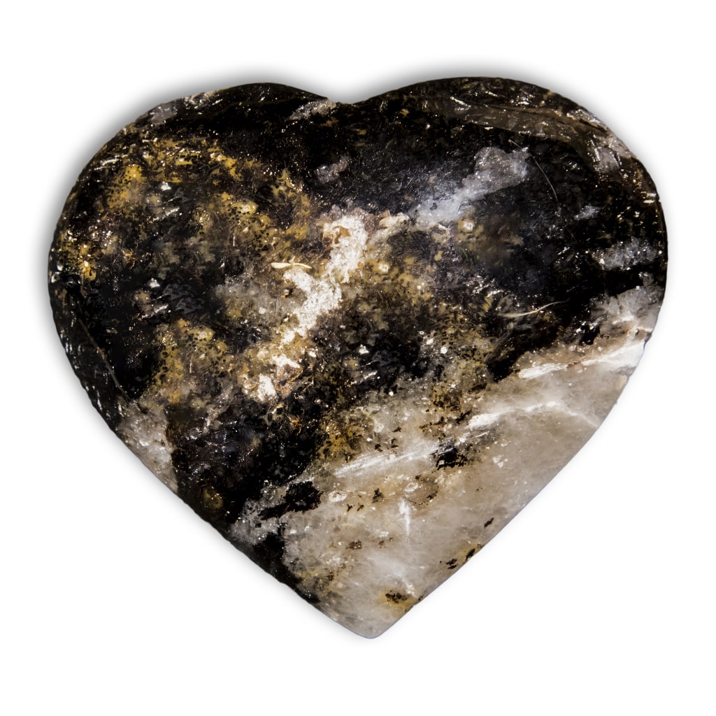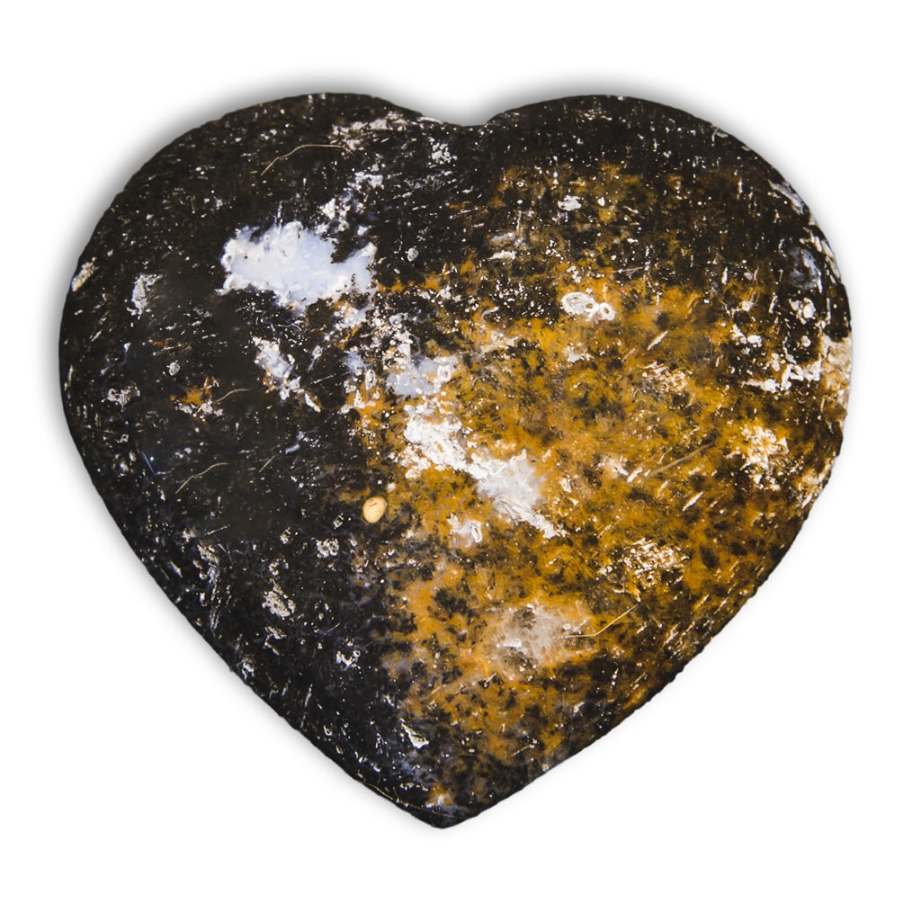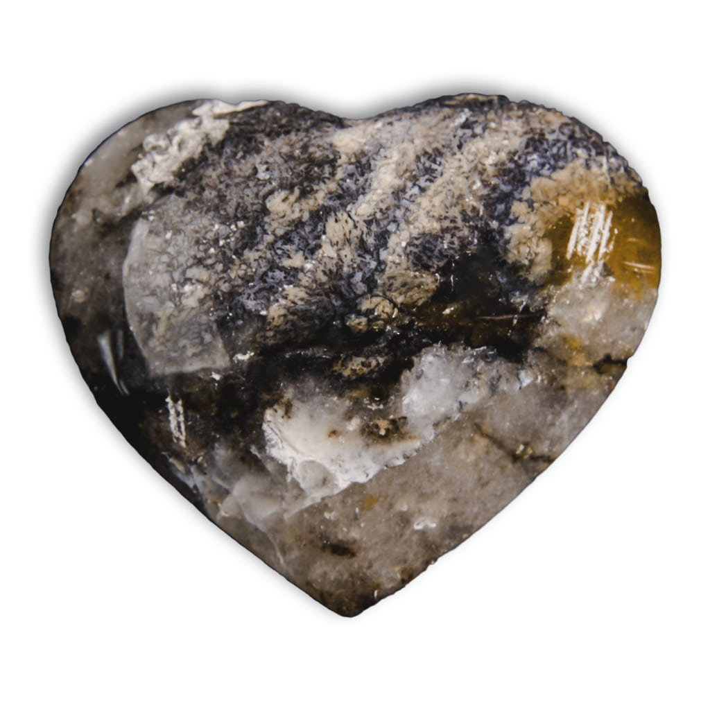 Precious natural Moss Agate or Mossy hearts with various drawings.