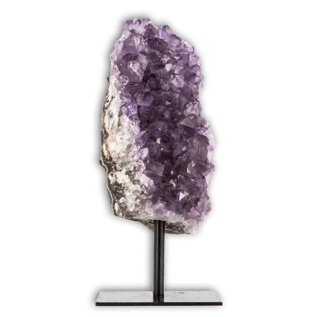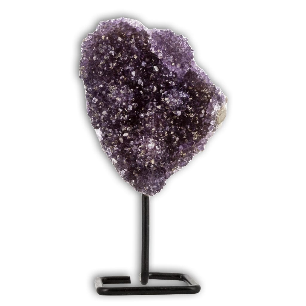 Beautiful and decorative druses of natural Amethyst with good color. The piece is drilled below with a black metal support.