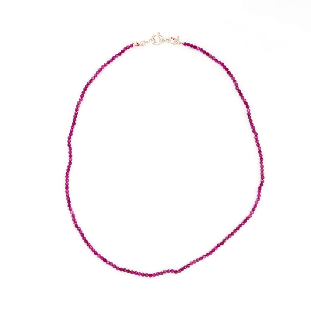 Gargantilla de Rubí natural de gran calidad en forma de bola facetada con cierre de Plata de Ley 925.