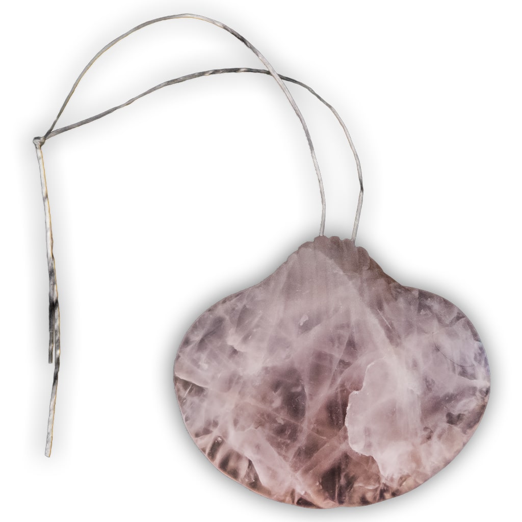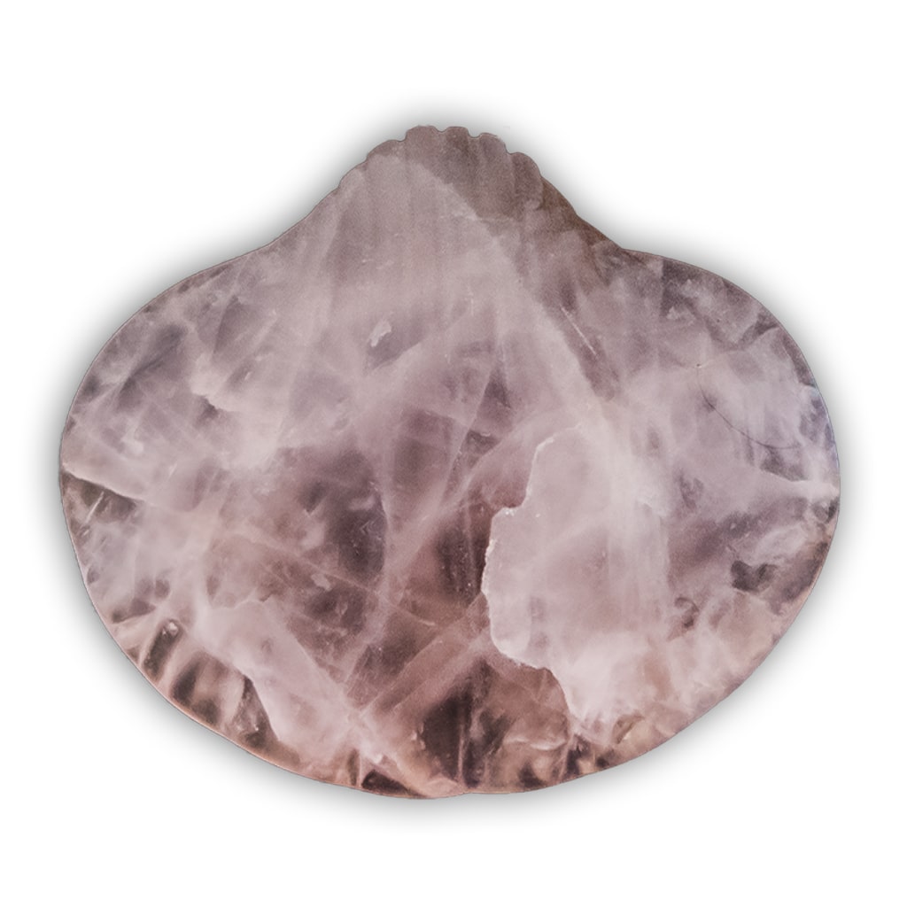 Concha de Santiago de Cuarzo Rosa de buena calidad y color. La concha viene con dos agujeritos en su parte más estrecha para poder colgarla con un cordón fino.