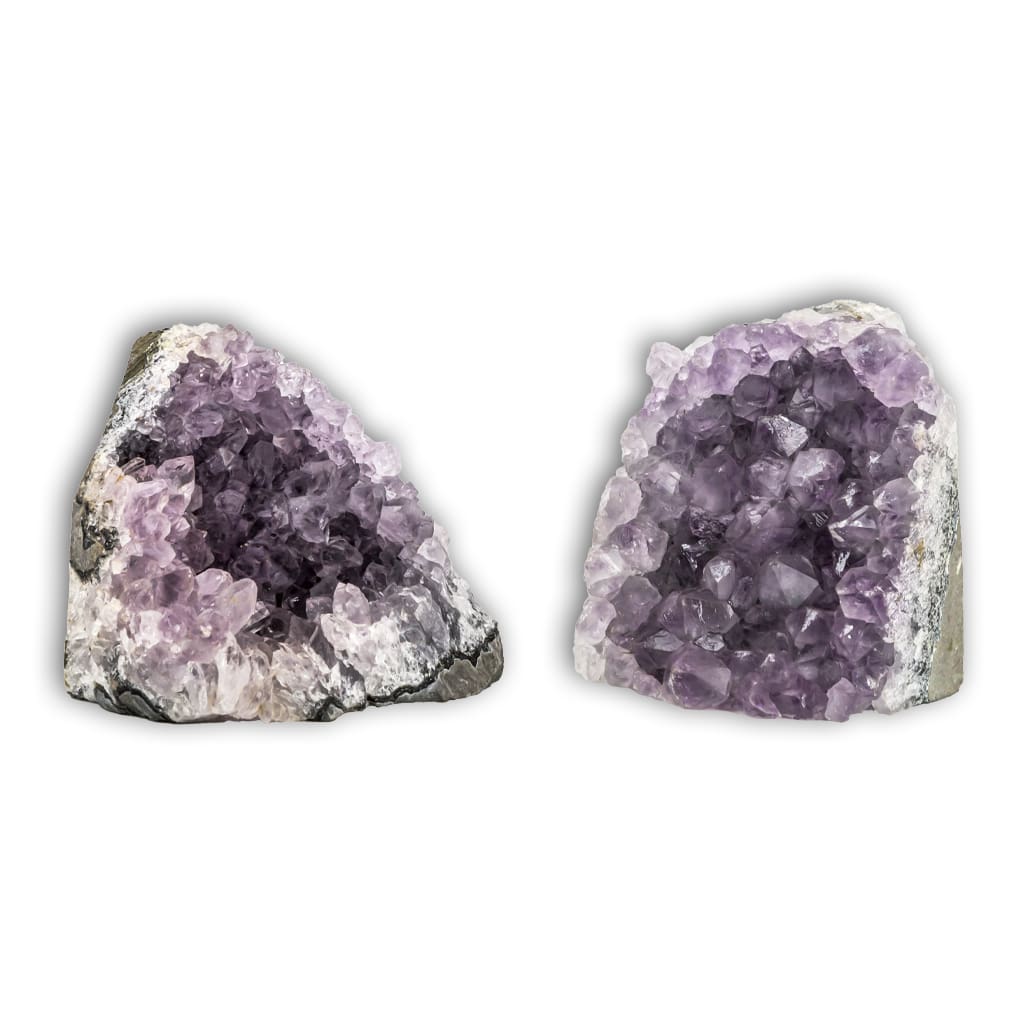 Preciosas Drusas de Amatista natural de color morado y bonitos cristales formando una drusa. Tienen la base plana para poder exponerlas de pie.
