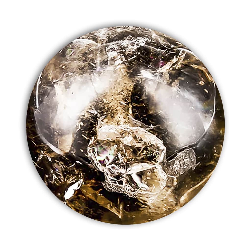 El color oscuro de este cuarzo se debe a una radiación de energía proveniente de minerales cercanos que convierte al cuarzo incoloro en colores “ahumados” de tonos amarillentos a marrón oscuro casi opaco. Este último es conocido como "Cuarzo Morrion".