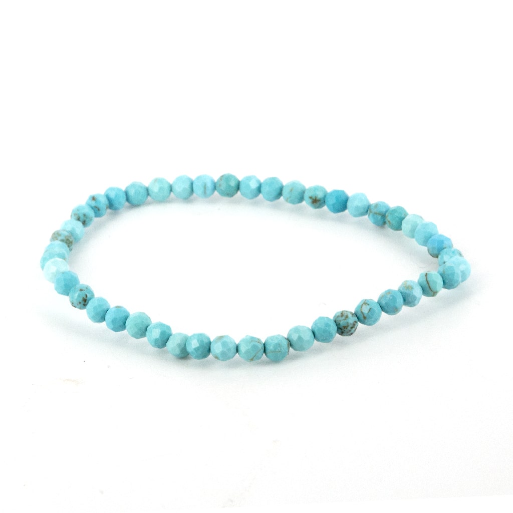 Pulsera elástica de Howlita teñida de color Turquesa en forma de Bola Facetada.