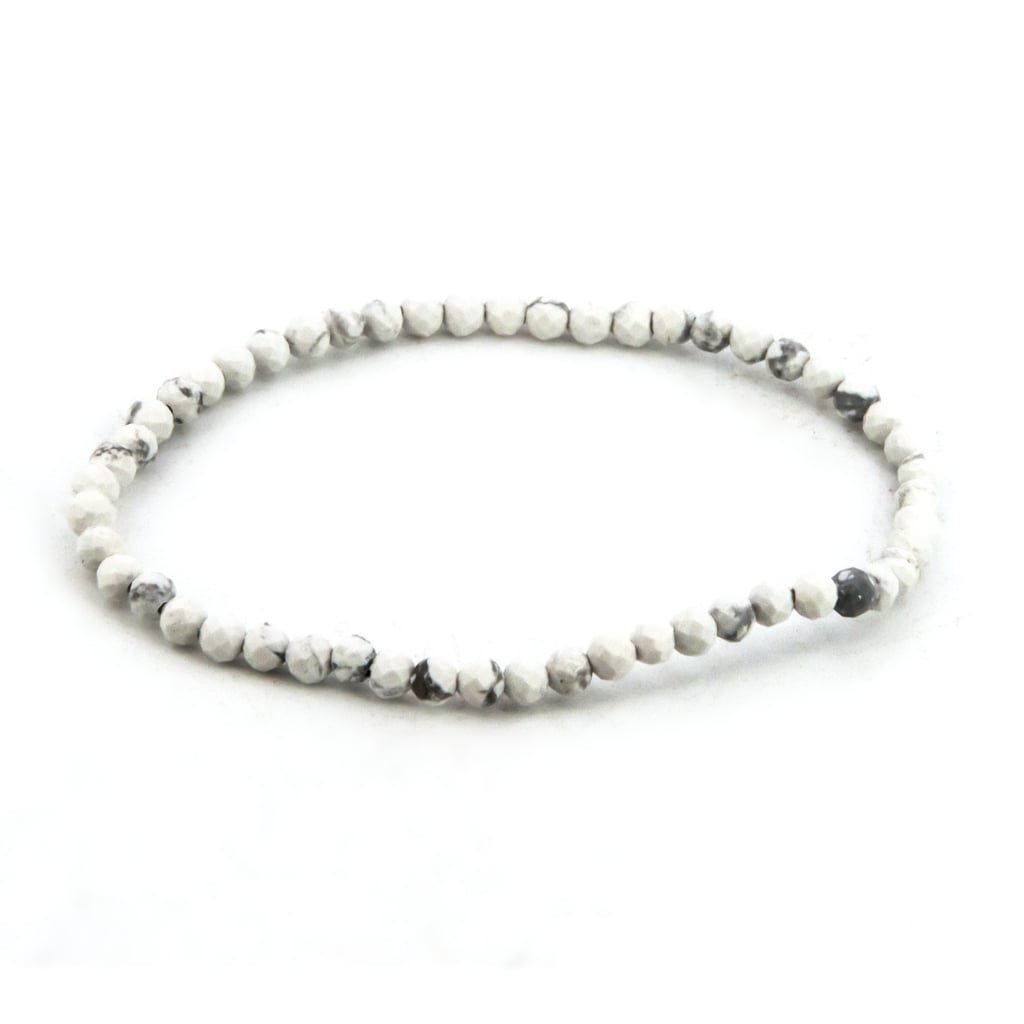 Pulsera elástica de Howlita blanca en forma de Bola Facetada.