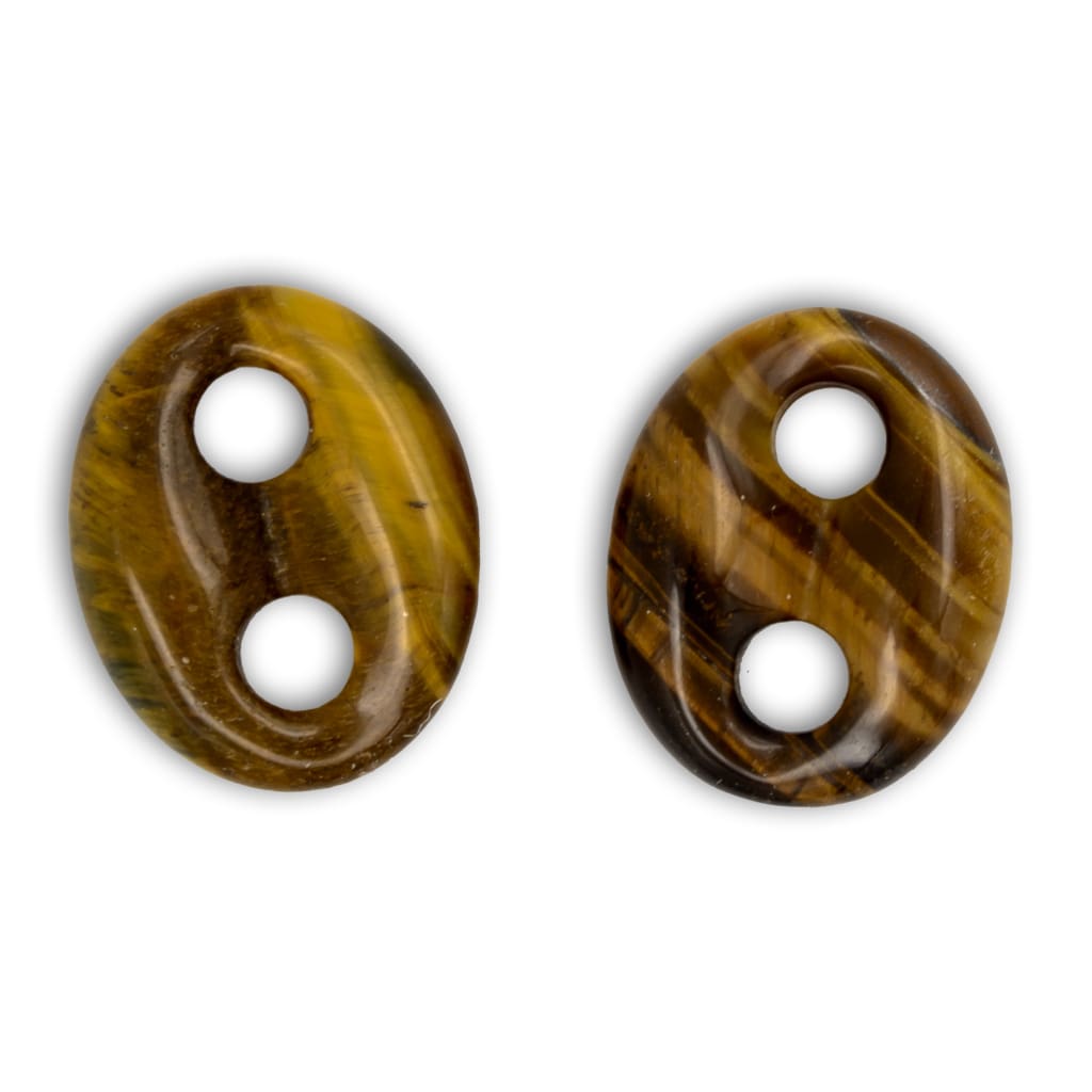 Cabochão facetado Tiger Eye natural. Tem duas perfurações de cerca de 2 mm para poder introduzir fio ou prata e utilizá-lo nos seus desenhos.