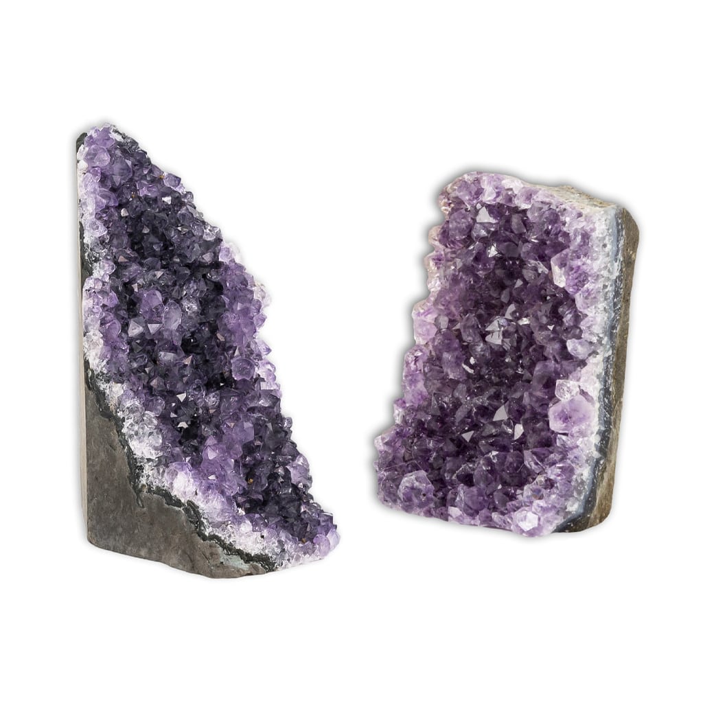 Preciosas Drusas de Ametistas naturais com muita cor e lindos cristais de ótima qualidade e tamanho. Eles têm uma base plana para poder expô-los em pé.
