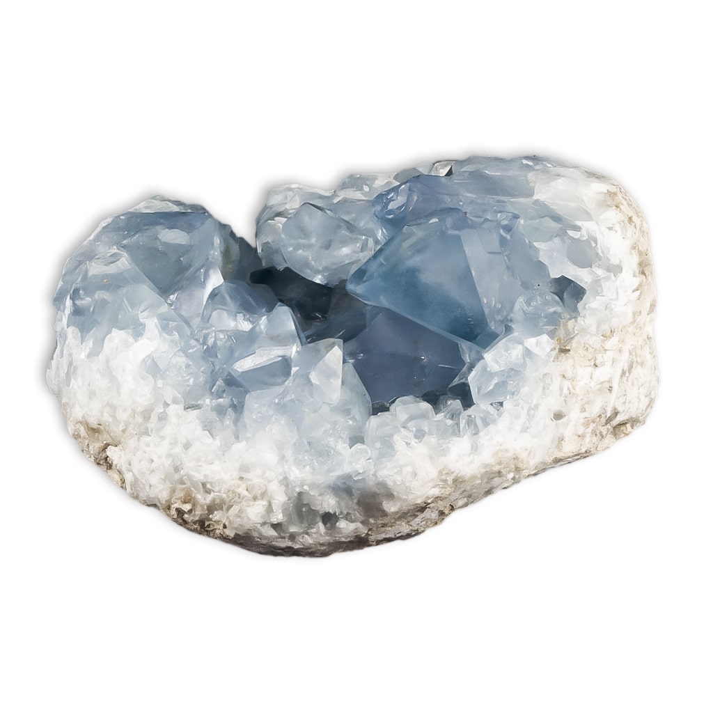 Drusas preciosas de Celestine natural de cor azul intenso.