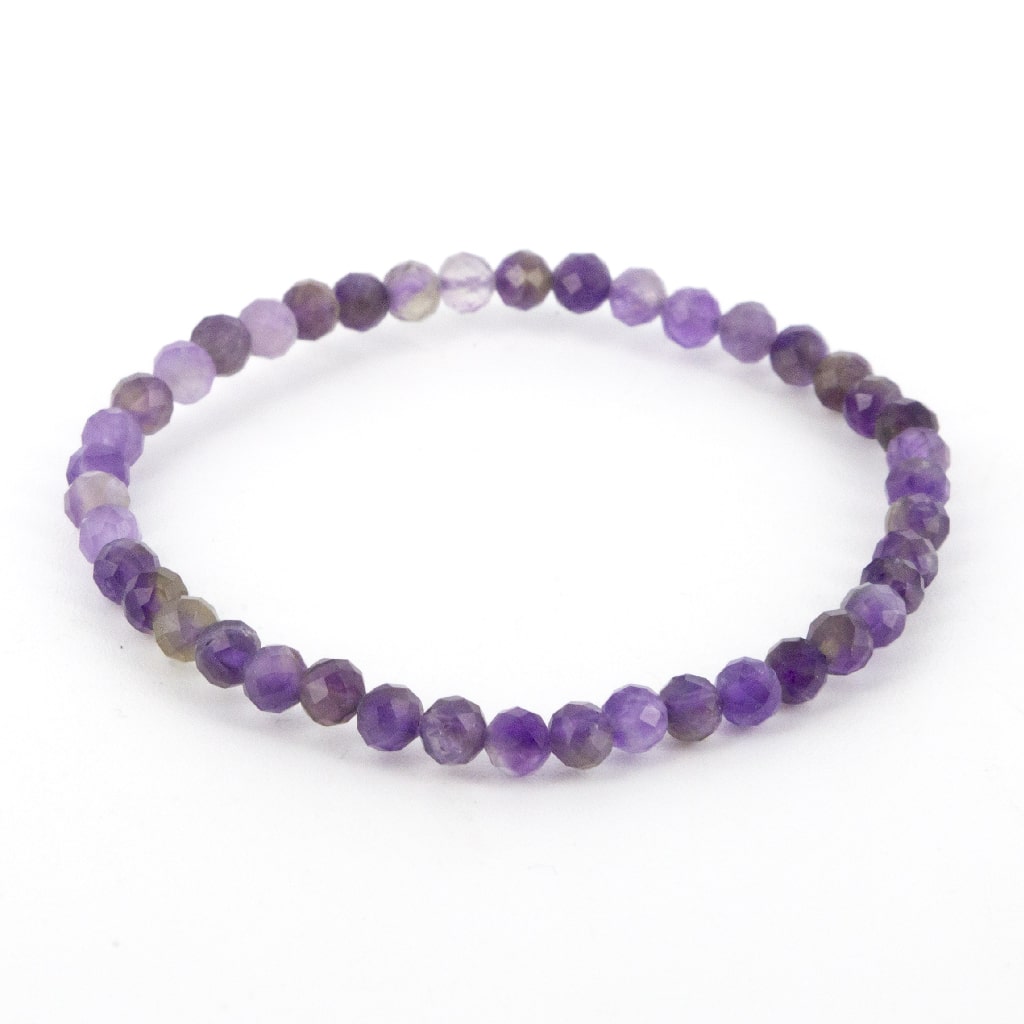 Pulseira de ametista com uma linda cor roxa em uma bola facetada que dá muito brilho ao mineral.